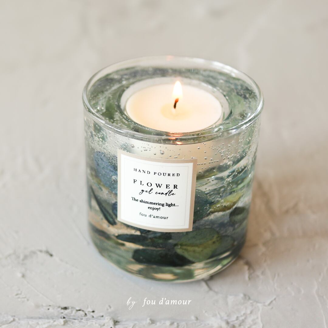 ジェルに浮かぶ花たちが、キャンドルの