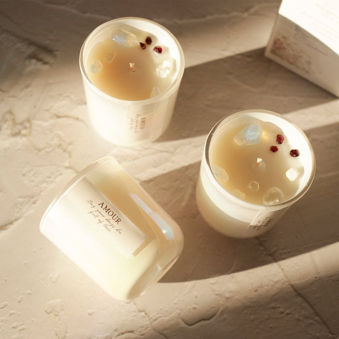 fou d'amour 13周年を記念した、ミニグラスタイプのソイキャンドル「AMOUR」。