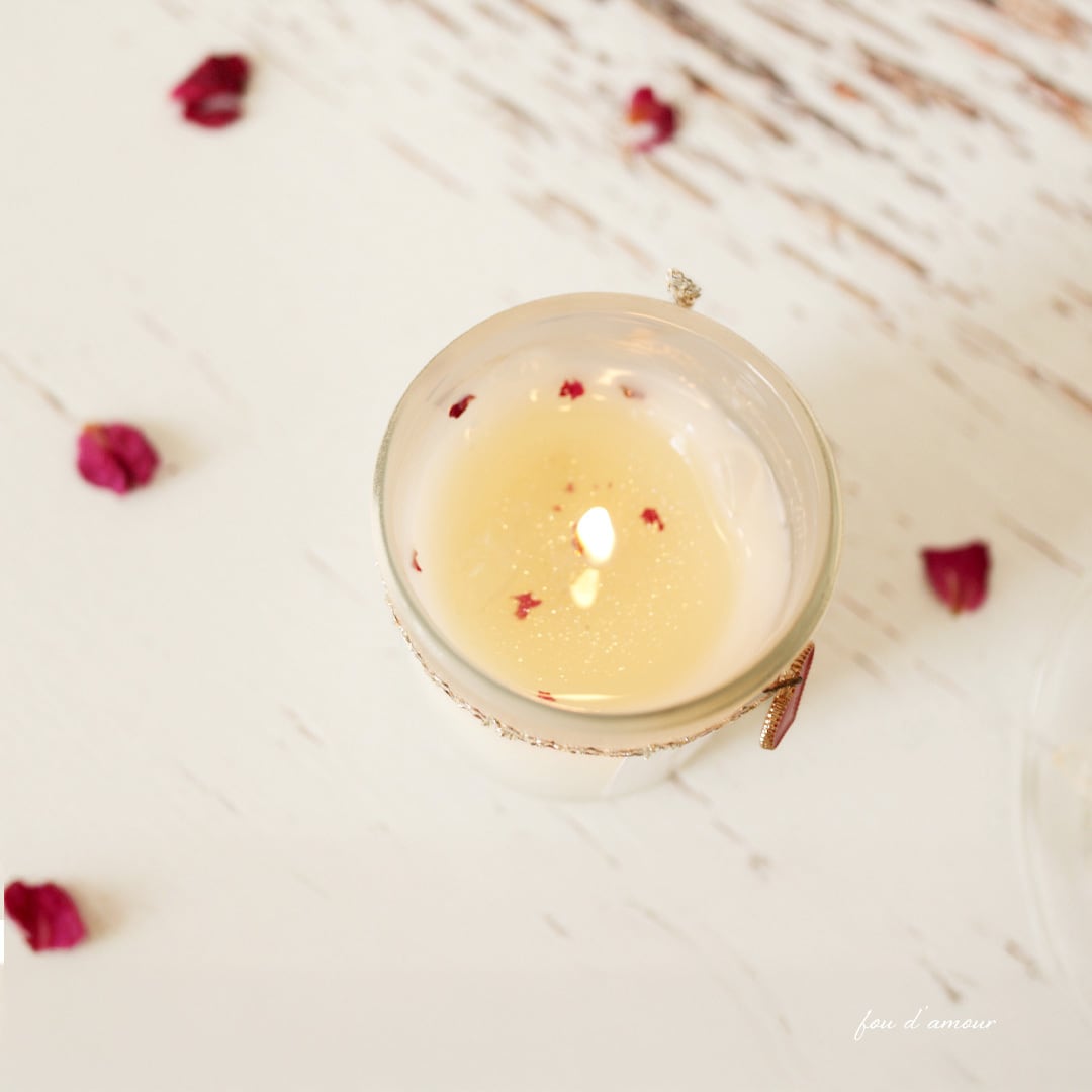 キャンドルにはローズの花びらと